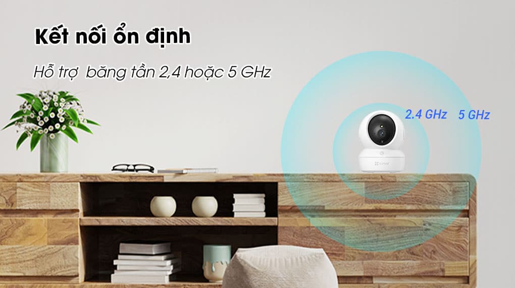 Với sản phẩm này bạn có thể kết nối với cả 2 băng tần 2.4 hoặc 5 GHz (đối với dòng 4MP) để đảm bảo tín hiệu wifi mạnh, đảm bảo camera xoay 360 có thể hoạt động ổn định.