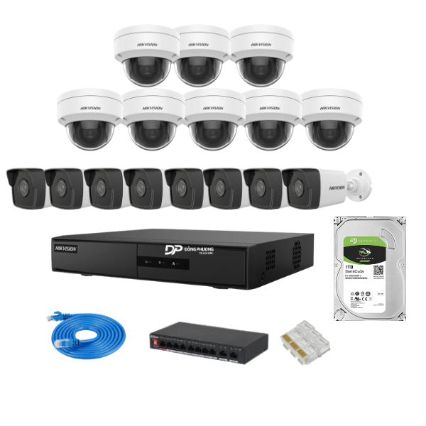 Trọn bộ 16 camera IP Hikvision 2MP bao gồm: