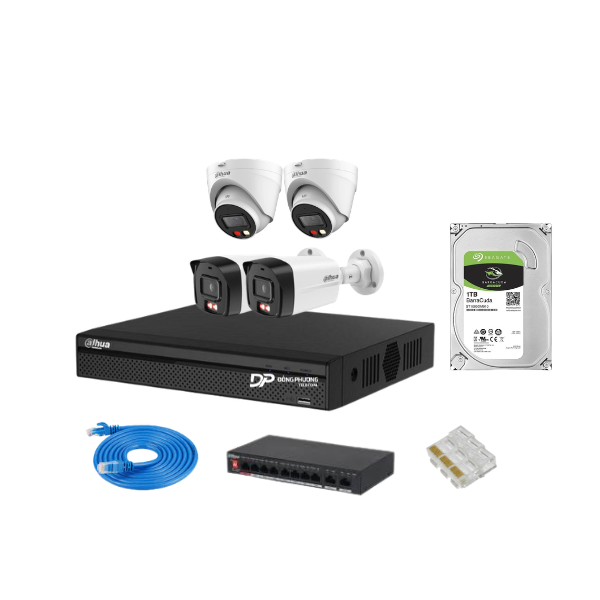Dòng camera Dahua Technology là giải pháp giám sát an ninh chuyên nghiệp được nhiều gia đình và doanh nghiệp tin dùng nhờ hình ảnh sắc nét, kết nối ổn định và khả năng hoạt động bền bỉ 24/7. Hệ thống hỗ trợ xem từ xa nhanh chóng trên điện thoại và máy tính, giúp bạn dễ dàng theo dõi và quản lý khu vực mọi lúc mọi nơi. Dưới đây là cấu hình trọn bộ 4 camera IP Dahua 2MP đã được lựa chọn sẵn đầy đủ thiết bị, lắp đặt nhanh và sử dụng ngay sau khi hoàn thiện.